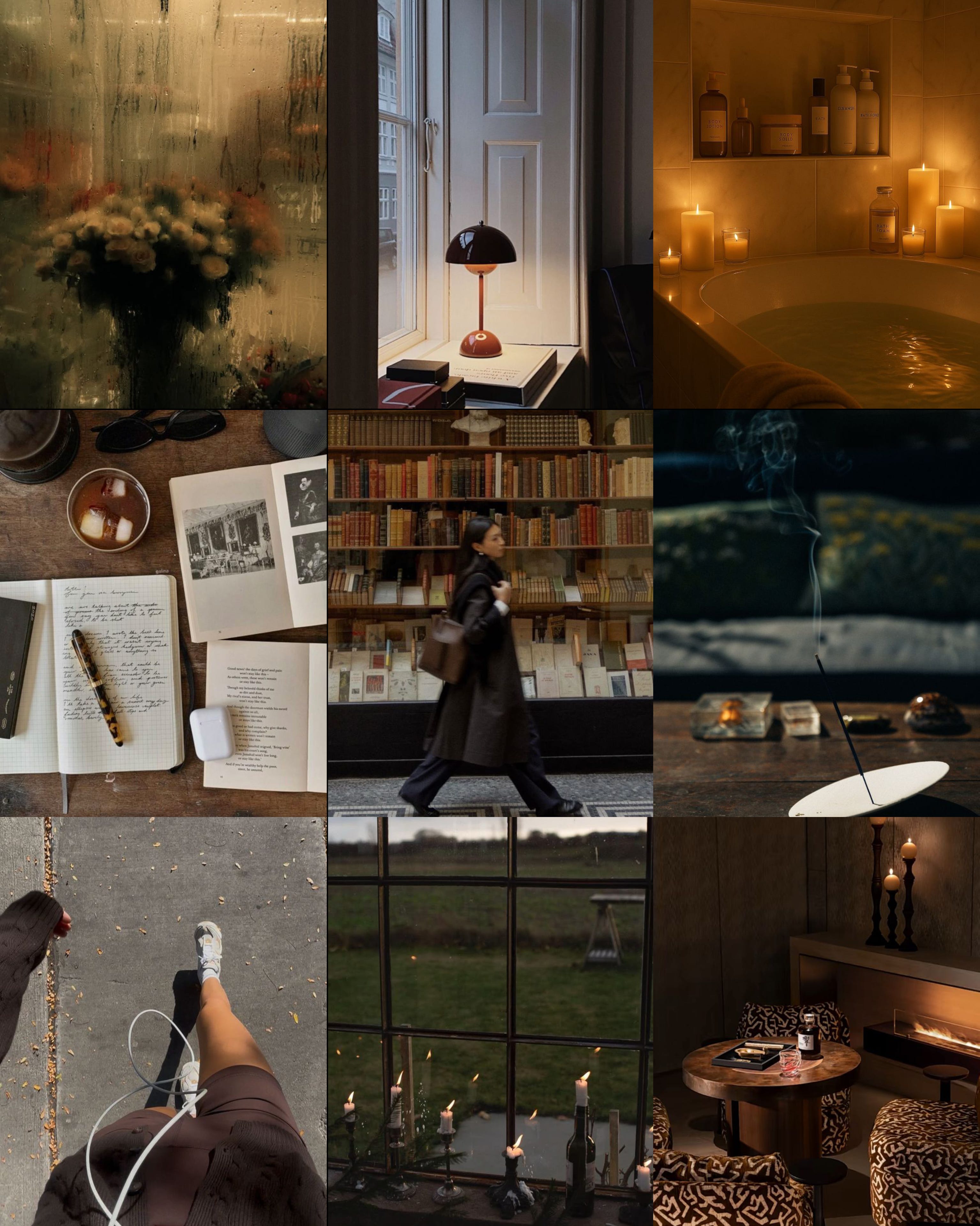 Candlesticks at twilight. Cozy lobby bars. Candlelit baths. Notebooks and journaling outdoors when the sun finally feels warm enough. Bookstore visits, library passings. Softness in shadows. Spring, but in a cardigan.